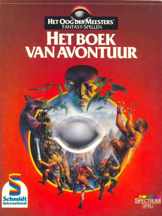 Afbeeldingen: de cover van Het boek van Avontuur uit de basisset van het Oog des Meesters-rollenspel (illustratie: Klaus Holitzka), en een afbeelding van de havenstad Havena (illustratie: Bryan Talbot).